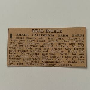 Santa Fe Ry A Small California Farm CL Seagraves Chicago 1917 Clipping SAI4-S66