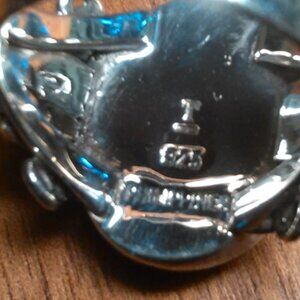 This gorgeous ring features a red coral stone crafted in a Santa Fe style. The ring is set in sterling silver and is size 6. 12.50 ctw. Brand new.