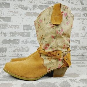 Santa Fe Yellow & Cream Leather Floral Western Heeled Bootie C702