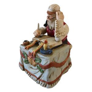 This charming Santa figurine music box plays "You Better Watch Out" while Santa checks his naughty and nice list. Perfect for holiday decor or as a gift for both boys and girls, this collectible item adds festive cheer to any room.