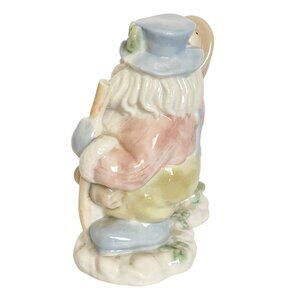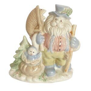 Santa Figurine W Fish In Bag Blue Top Hat Porcelain Pastel Color Christmas Decor