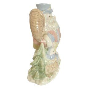 This jolly Santa figurine features a charming design with a blue top hat and a fish in his bag. Crafted from porcelain, it showcases pastel colors, making it a sophisticated addition to your holiday decor. Its compact size allows for easy display on mantels or shelves.
