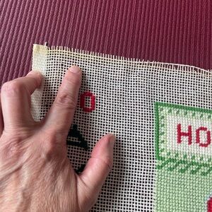 This lot is a hand printed needlepoint canvas. In good condition with some yellowing on edges, and some holes on the bottom. Please see pics for this. The canvas is about 12" x 16” and it is 10 count.