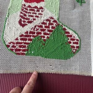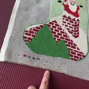 Santa Going Down the Chimney Stocking Needlepoint Canvas Vintage Christmas