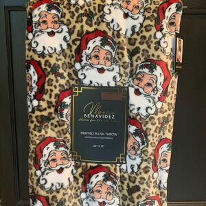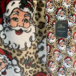 Gorgeous leopard print background with Santa! If you are tired of the standard holiday decor, this throw will give you a little break from all the cutesy patterns with the leopard print - while still including Jolly Old Saint Nick. Oversized, is a generous 60"x70". From Monica Benavidez "Home for the Holidays" line. Never used, still in original wrapping. Just adorable and oh so soft oversized plush throw is perfect every holiday season bringing comfort and coziness. Easy care, machine wash cold. For adults, for children, or even for your fur baby! I have several plush throws in my closet so find your favorite!
