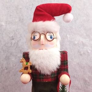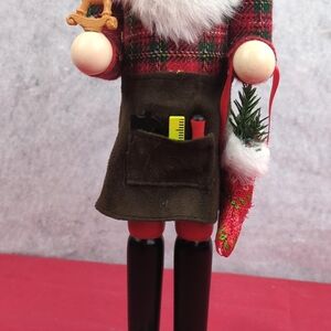This cute Santa nutcracker is busy making toys, wearing his tool apron!