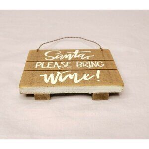 Santa Please Bring Wine Wood Slat Christmas Tree Ornament Decor Includes top wire loop for easy hanging.