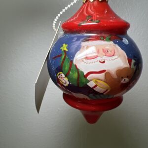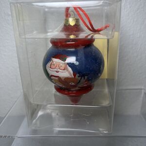 Santa Finial Reverse Inside Hand Painted Glass Ornament in Box