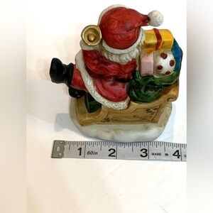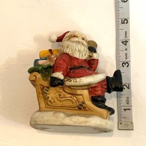 Santa Ringing Bell on Sleigh Figurine Ceramic Bag of Presents Vintage