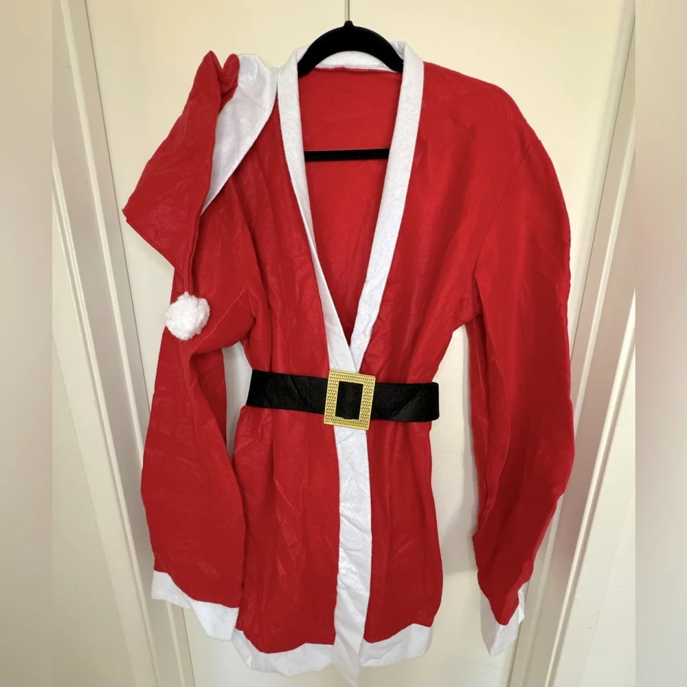 Santa robe/jacket. Costume-like. Feltish material. Comes with belt and matching hat.