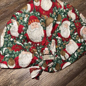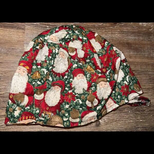 Santa Saint Nick Nicholas Christmas Surgical Head Wrap Medical Cap Uniform Scarf in excellent preowned condition. Has elastic strip in the back between the two ties for adjustable comfort fit. Christmas printed.