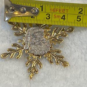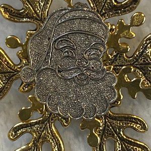 Santa Snowflake Christmas Pin Brooch Holiday Wear. Unbranded. Gold and Silver Color Metals. Almost 2 inches.