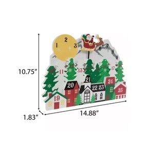 Countdown the days until the most wonderful day of the year with this Santa Town Countdown Calendar. This decoration features a small town with mountains and trees in the background. Different parts of the town are lined with numbers that have a hole above them, so you can move Santa each day until he reaches Christmas! Your kiddos will enjoy seeing Santa and his reindeer fly over the cozy holiday town!