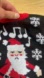 Fun Santa design with musical notes. Red and white stripes on sleeves. Perfect for holiday festivities and Ugly sweater Christmas party.