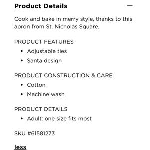 New with tags adult size women’s tiered Santa apron. A little wrinkly.