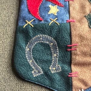 Charming Christmas stocking with Santa in a cowboy hat. Ideal for festive decor.