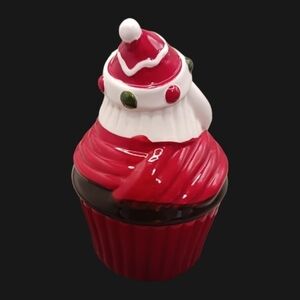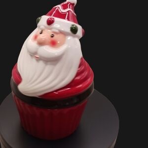 Santa cupcake canister trinket cookie jar is like new with box smoke and pet free home