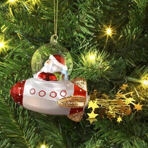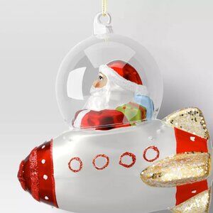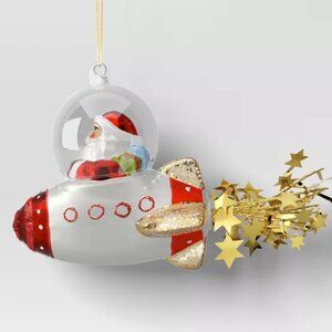 Santa flying a Spaceship Christmas Ornament * Glass * NEW Wondershop NWT