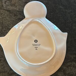 Adorable Santa-themed cookie plate. Perfect for holiday treats. Traditional Santa cookie plate with spot for a cup of milk.