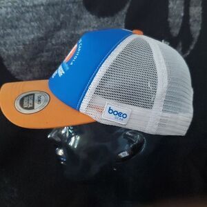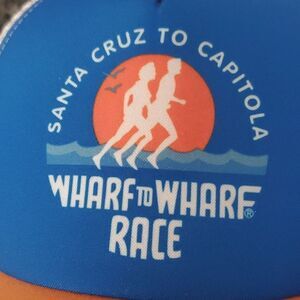 This is a trucker mesh hat from the Santa Cruz to Capitola Wharf to Wharf race. It has moisture wicking fabrics and a snapback closure.