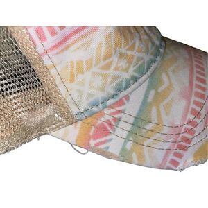 Get ready to elevate your casual look with the C.C. Santa Fe Ponytail Baseball Hat. The beautiful pastel print, together with the adjustable distressed design, gives a unique and stylish touch to any outfit. Perfect for the boho chic gal who wants to make a statement while keeping it comfortable and effortless. NWOT Excellent Condition