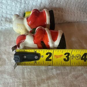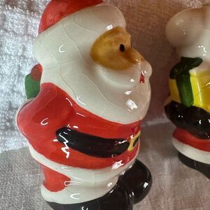 Add festive charm to your table with these delightful Santa and Snowman salt and pepper shakers. Featuring classic red, white, and black colors, they are perfect for holiday gatherings.