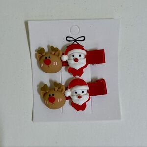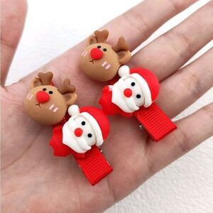 New! Christmas hair clips. Santa and reindeer hair clips. Two clips. Can be used for kids or adults. Approximately 2“. Bundle to get discount.