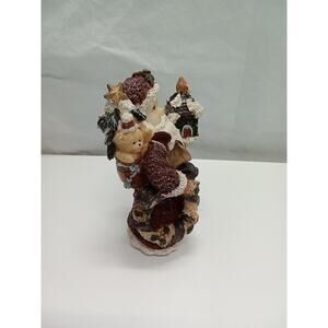 Santa Figurine holding bag of toys and Wreath lightweight resin