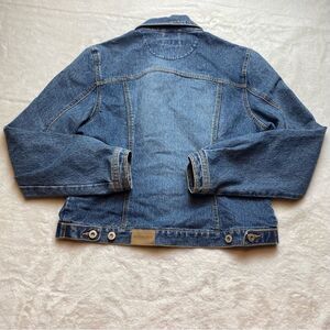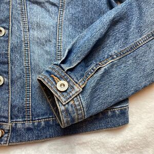 Santana Jeans Authentic Denim Jacket Size Medium. Excellent used condition. White enamel covered buttons. 2 front pockets. Adjustable side buttons. Measures chest 39", length 21.5", sleeve 24.5".