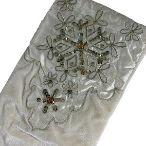 Santas Best Ivory White Snowflake Christmas Eve Stocking Holiday Sequins