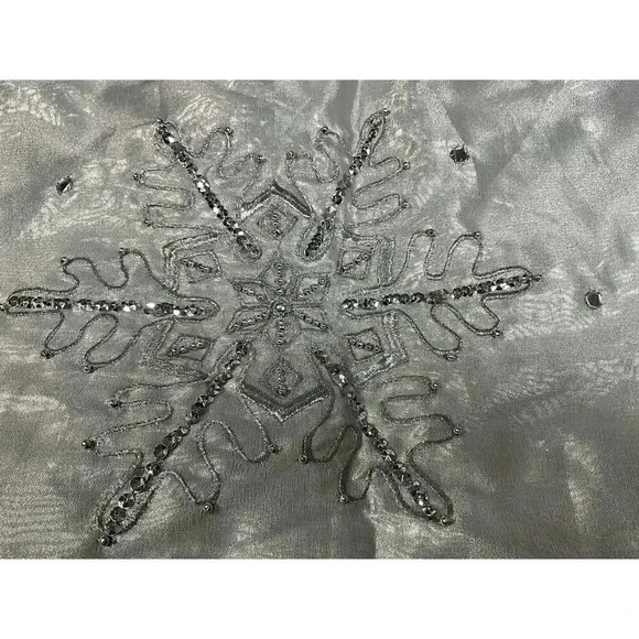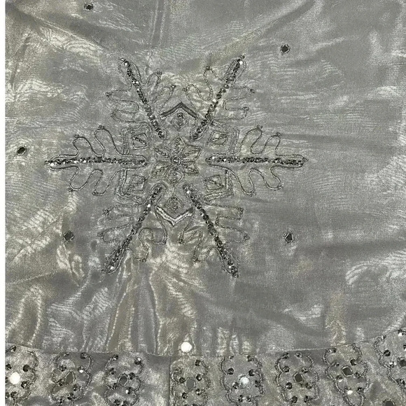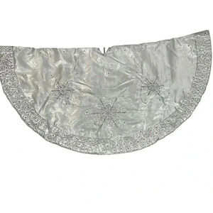 Santas Best Tree Skirt Silver Beautiful Snowflake Detailing Made in India