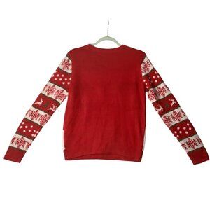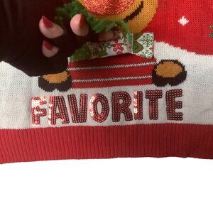Santa's Favorite Reindeer Ugly Christmas Sequins Bells Sweater Women Medium