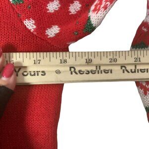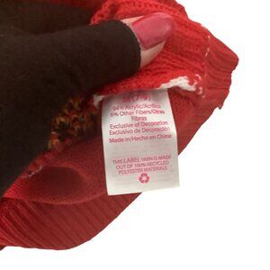 This festive sweater features a vibrant reindeer design, combining traditional holiday elements with playful motifs. Crafted from 94% acrylic, it offers both comfort and warmth.