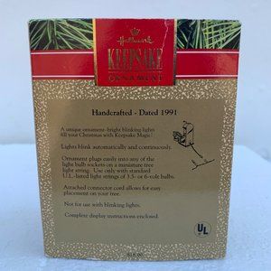 Hallmark Santa's Hot Line Magic Christmas Ornament From 1991. Santa is working hard taking all the Christmas time calls. The lights on the switchboard blink from green to red. Price tag is still attached to box. Size: 3 1/4" high.