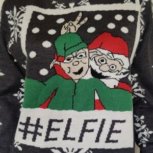Very beautiful nice sweater with some elf's logo taking a selfie this item is a size (M) and measures 20.5" from chest & 24" inches on length.in excellent good condition