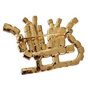 Santa's Sleigh Brooch Vintage Green Red Rhinestone Pin