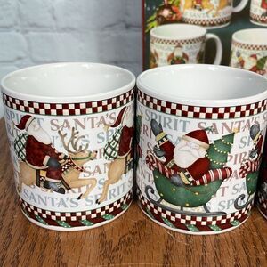 Santa's Spirit Set of 4 Mugs Debbie Mumm 2001 like new! 4 designs Oneida