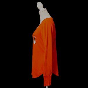 Santa’s Treasures Tee Shirt. Red. Long Sleeve. Black and White Gnome Graphic on Front. Round Neck. Rounded Hem. Polyester Blend. Women’s Size Medium. New with Tags.