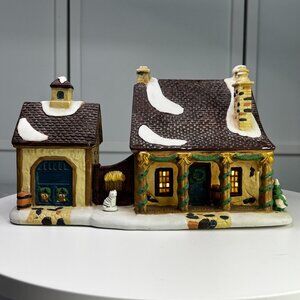 This beautiful Christmas collectible makes a classy addition to any village collection. The Barnstable Livery is still in decent condition for being over 25 years old and has beautiful artwork, color and design, each piece is properly marked on the bottom of the piece. Includes original box (box has wear) and light cord.