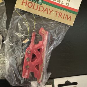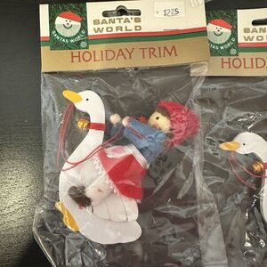 Santa’s World Vintage Lot Of Holiday Ornaments Wooden Ice Skater Sled Goose NOS