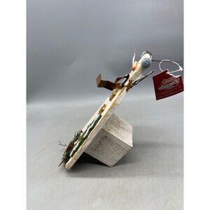 Perfect for holiday decor, this versatile wood snowman features a charming metal scarf and tree star design. Suitable for both indoor and outdoor display, it's crafted with white pine cones and comes new with tags.