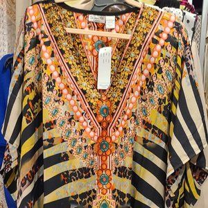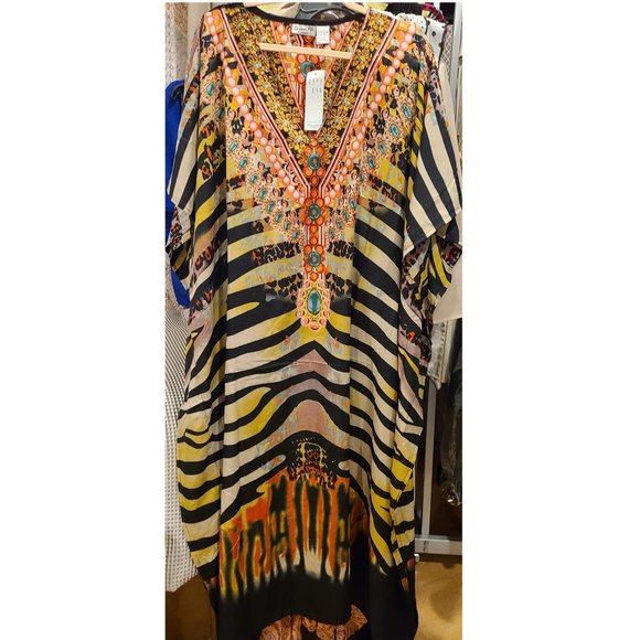 Sante Classics Kaftan Maxi Dress Tiger stripre animal /pearl print V Neck OS NEW