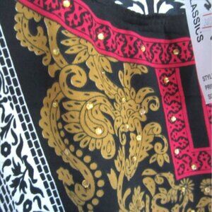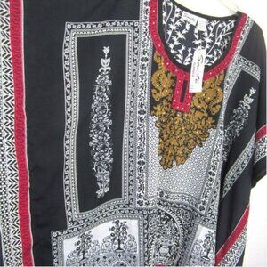 Sante' Classics NEW One Size Short Caftan Black White Red Gold Embellished