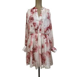 Sante Grace Vetements Sheer Pink Floral Empire Waist Long Sleeve Mini Dress 1XThe Sweet Like Ice Cream Chiffon Empire Waist Dress in Floral Print