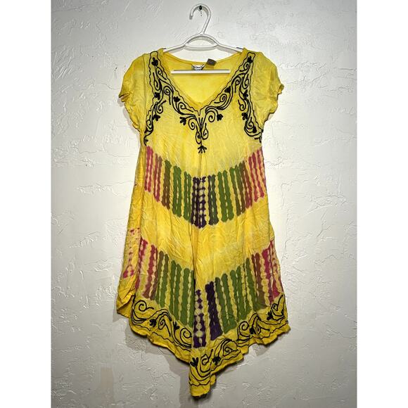 Sante colorful yellow paisley print sun dress kaftan womens OS bohemian hipster