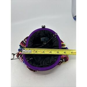 Santi Rainbow Beaded Clutch Purse Bag Handheld Kiss Lock Sequin Round