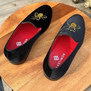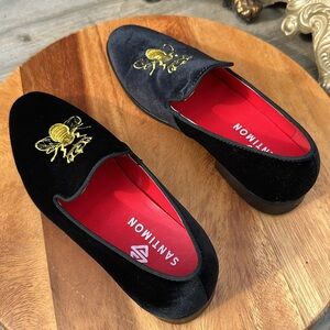 Santimon Black Velvet Crown Bee Slippers Shoes Loafers 6.5 Women’s, 5.5 Men’s
