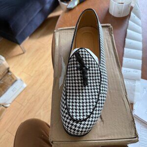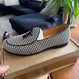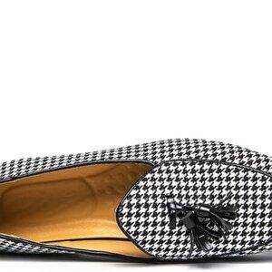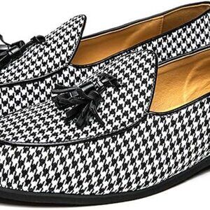 Santimon Mens US 10, 11 Black/White Slip-On Houndstooth Tassel Loafers Dress Sho