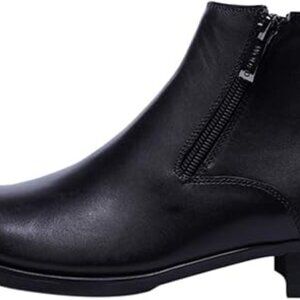 Santimon Mens US 7-12 Black Ankle Genuine Leather Zipper Pointed Toe Casual Boot