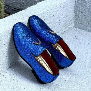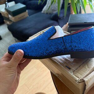 Santimon Men's US 8.5, 9.5 Blue Glitter Sequin Slip On Loafers Tuxedo Suit Shoes